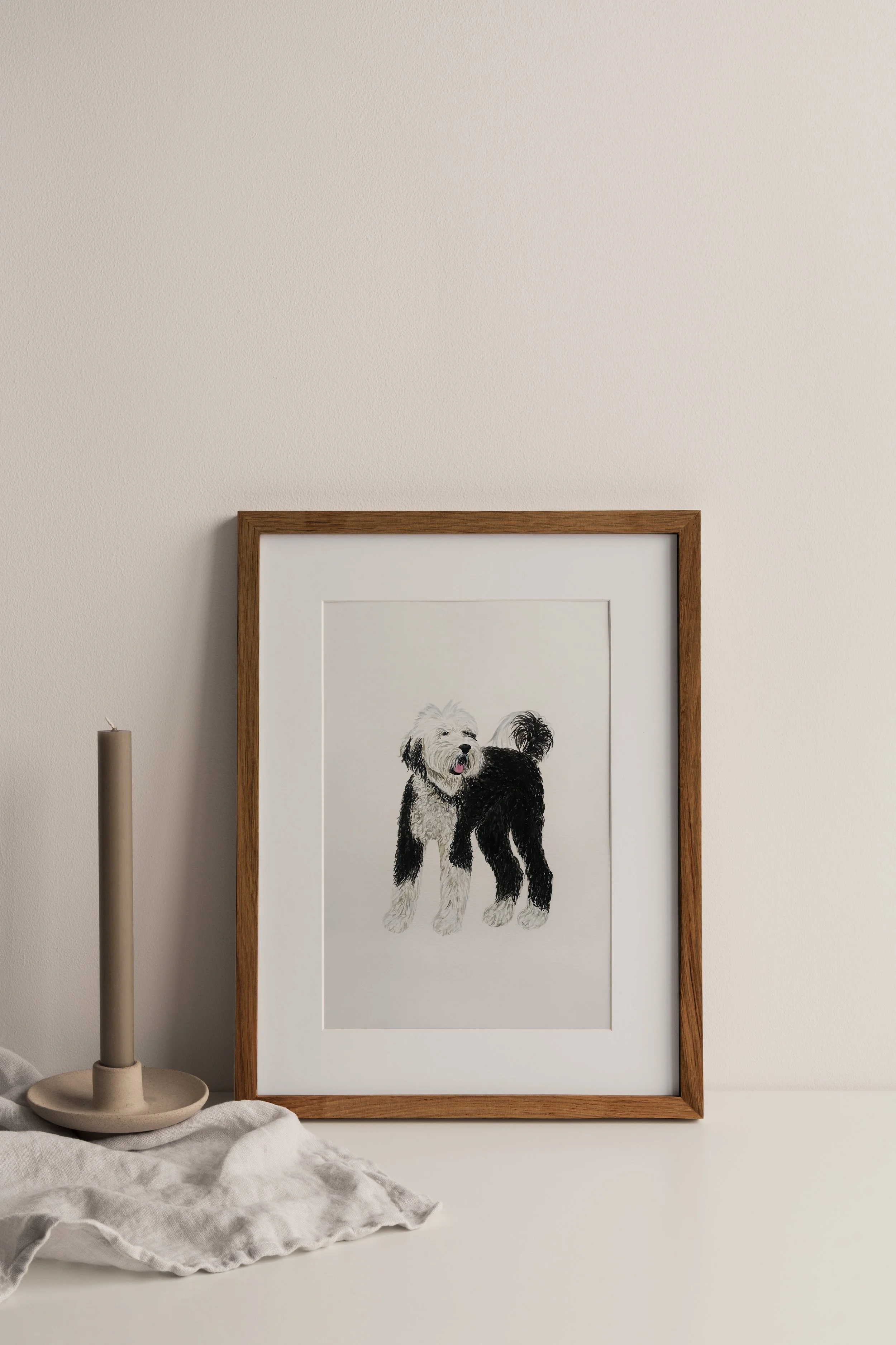 Each portrait is custom and made to order, using Winsor & Newton Designer Gouache Paints on your choice of a variety of high quality watercolor papers. Options include Arches 100% Cotton Hot or Cold Press 140 lb Watercolor Paper or Nujabi 100% Cotton Cold Press 200 lb Individually Handmade Watercolor Paper Sheets with Natural Deckle Edges. For more information on gouache paints and paper options, please visit the Materials page.
